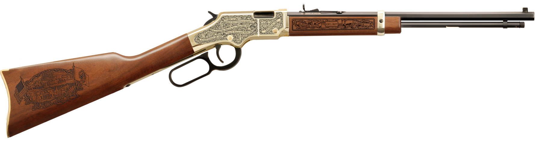 In honor of your county's rich historical legacy, Historical Armory is proud to present the Limited Historical Edition Rifle! Produced on the affordable, American-made Henry .22 LR rifle (Model #H001 & H004) and .30/30 (Model # H009B, not pictured), the Limited Historical Edition rifle combines meticulous research, original artwork, and finely detailed engraving to celebrate the history of ACT NOW, because there will be only rifles ever produced by Historical Armory! Purchase each model separately or all rifles for a complete limited edition set.