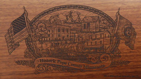 • The right side of the American walnut buttstock is engraved with an intricate, original piece of artwork that captures the unique history of your county, while the left side is reserved for custom personalization.