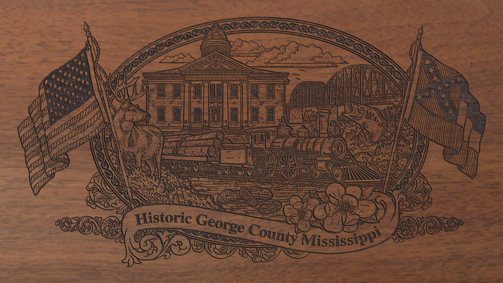 The right side of the American walnut buttstock is engraved with an intricate, original piece of artwork that captures the unique history of your county, while the left side is reserved for custom personalization.