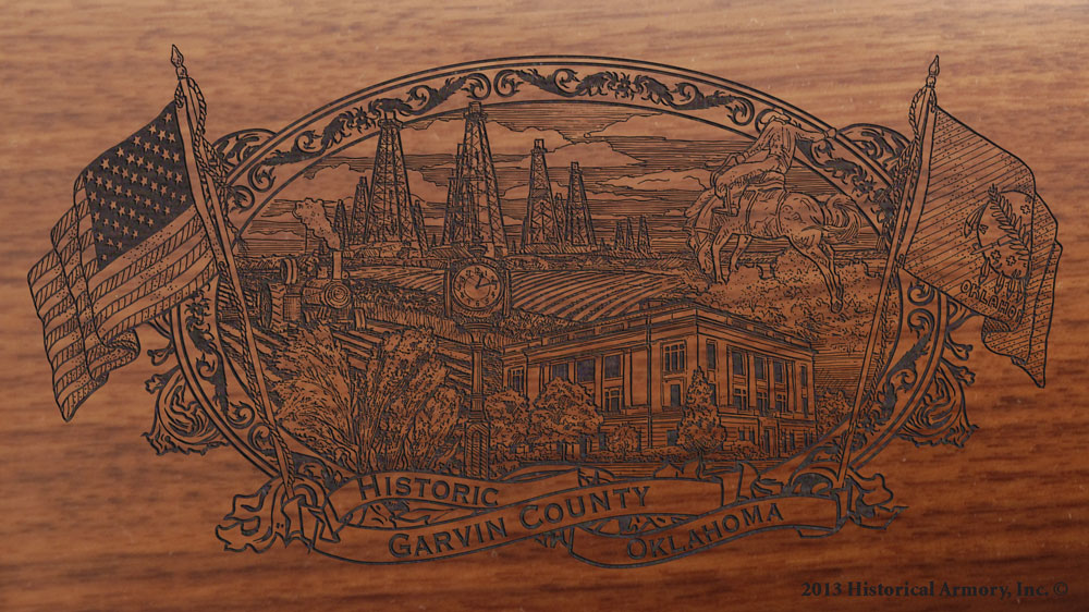 The American walnut buttstock is engraved with an intricate, original piece of artwork that captures the unique history of your county on the right side, while the left side is reserved for custom personalization.