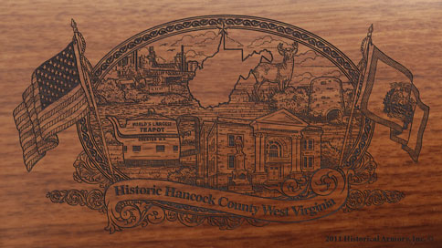 The right side of the American walnut buttstock is engraved with an intricate, original piece of artwork that captures the unique history of your county, while the left side is reserved for custom personalization.