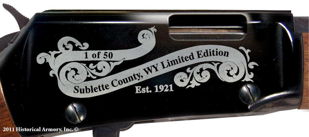 • The right side of the reciver is engraved with an elaborate scroll and banner pattern with your county name and edition number.