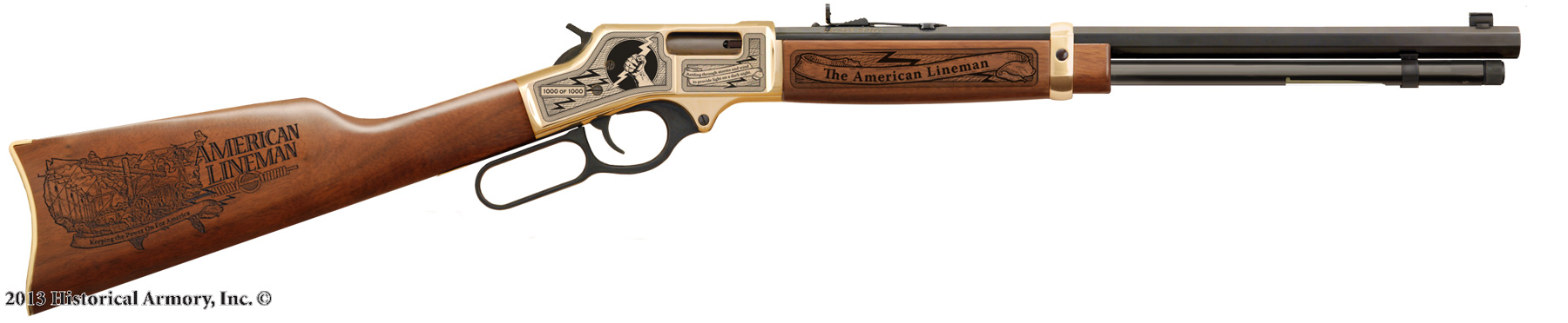 The American Lineman Limited Edition Rifle is available on the affordable, American-made Henry "Big Boy" (H006), .30/30 (H009B), .22LR (H001) and "Golden Boy" (H004) models. ACT NOW, because there will be only 1000 American Lineman Limited Editions ever produced by Historical Armory! Each fully functional rifle includes space on the buttstock for custom personalization, providing a unique opportunity to create your own treasured family heirloom that will be passed down for generations. Purchase the H001, H004, H006, or H009B separately, or all the rifles together for a complete limited edition set.