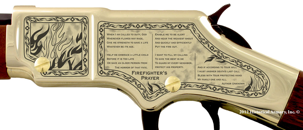 Available on the affordable, American-made Henry H001, H004 “Golden Boy,” and H009B, Historical Armory’s Classic American Firefighter Edition Rifle features original artwork and highly-detailed laser engraving of images inspired by the courage, service, and enduring spirit of the American Firefighter.