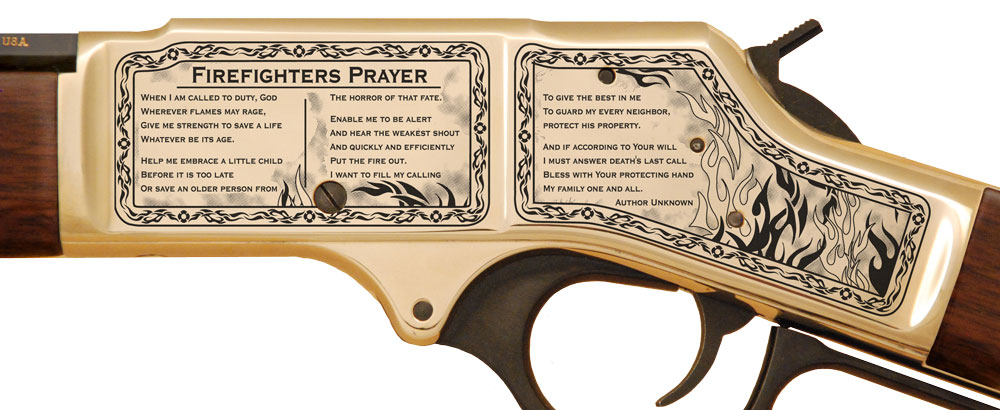 Each Classic American Firefighter Edition Rifle is available on the American-made Henry .30/30 (H009B), Golden Boy .22LR (H004), and Classic Lever Action .22LR (H001) and features the following: