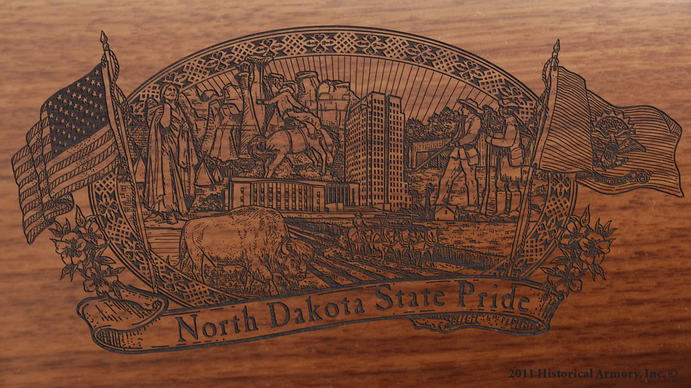 • The right side of the American walnut buttstock is engraved with an intricate, original piece of artwork that captures the unique history of your state, while the left side is reserved for custom personalization.