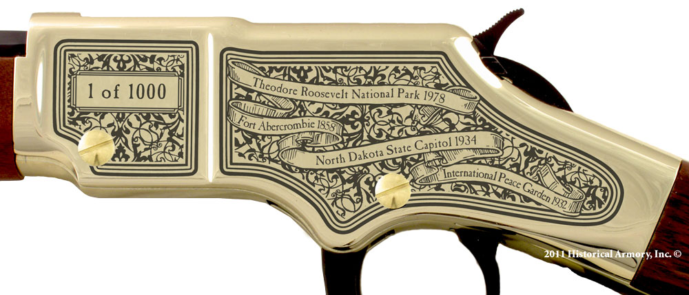 Each State Pride Historical Edition Rifle available on the American-made Henry LR. 22 (H001T), Golden Boy (H004), and .30/30 (H009B) feature the following: