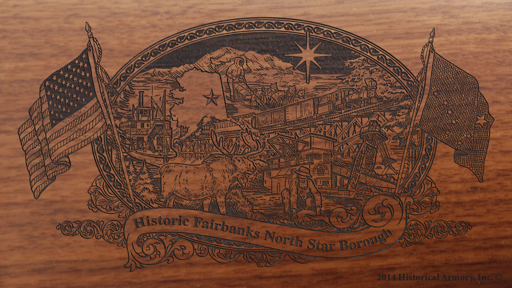 The right side of the American walnut buttstock is engraved with an intricate, original piece of artwork that captures the unique history of your county, while the left side is reserved for custom personalization.