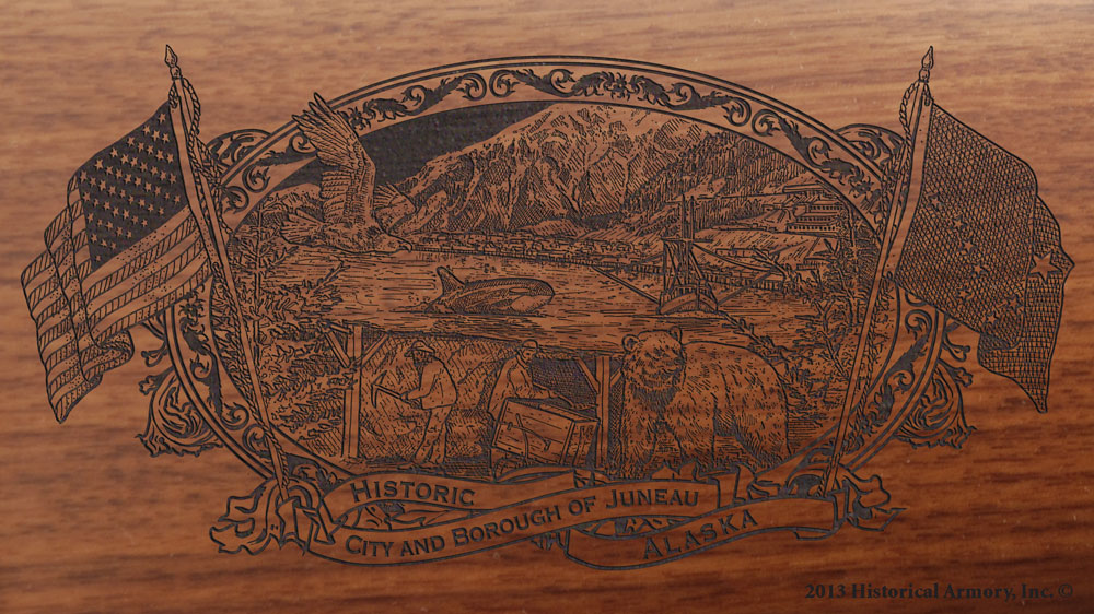 • Detailed engraving on both sides of the American walnut forearm, with the name and establishment date of your county on the right side and your state name and nickname on the left side.