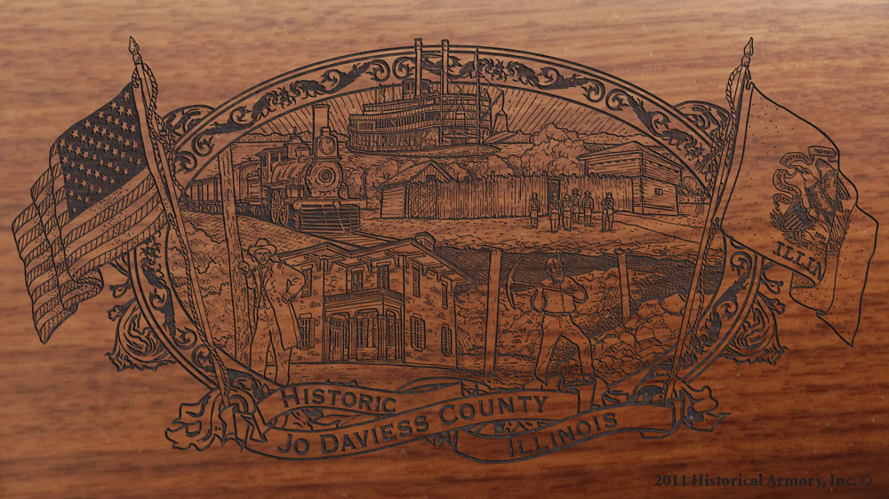 The right side of the American walnut buttstock is engraved with an intricate, original piece of artwork that captures the unique history of your county, while the left side is reserved for custom personalization.