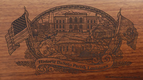 Detailed engraving on both sides of the American walnut forearm, with the name and establishment date of your parish on the right side and your state name and nickname on the left side.