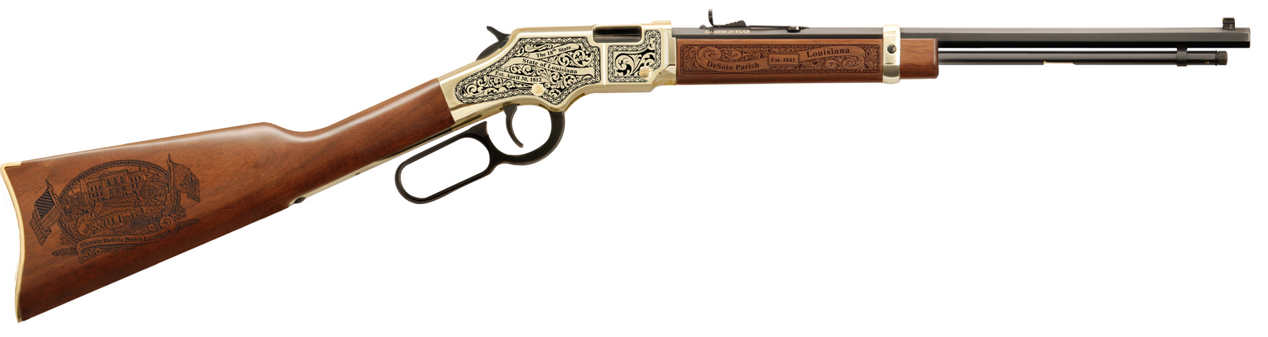 Each Parish Historical Edition Rifle available on the American-made Henry LR. 22 (H001), Golden Boy (H004), and .30/30 (H009B) feature the following: