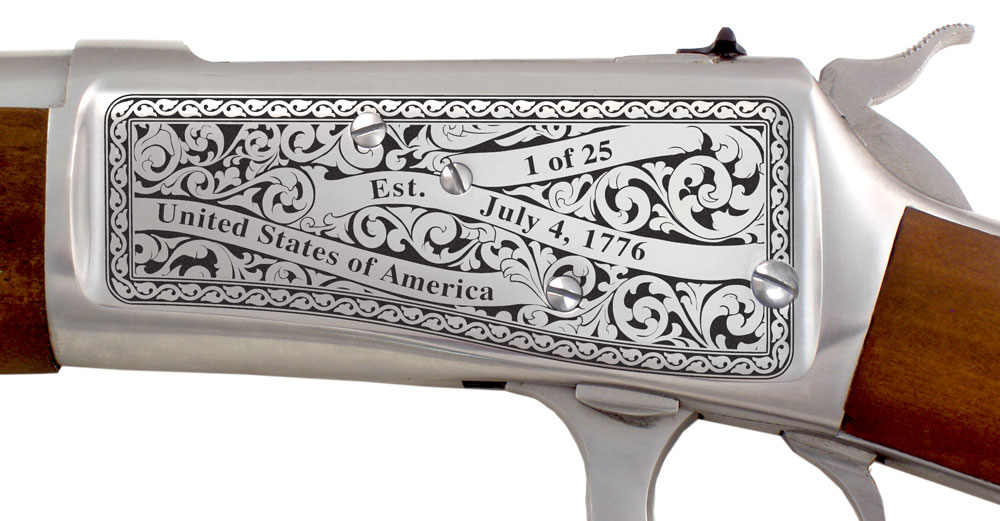 Finally, both sides of the stainless steel receiver are engraved with an elaborate scroll and banner pattern. Each rifle is individually numbered on the left side of the receiver, for example an edition of 50 rifles would be numbered 1 of 50, 2 of 50 and so on.