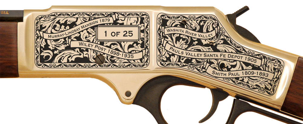 Each County Historical Edition Rifle is available on the American-made Henry LR. 22 (H001 & H001T), Golden Boy (H004), and .30/30 (H009B) and features the following: