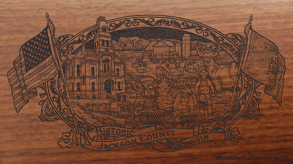 The right side of the American walnut buttstock is engraved with an intricate, original piece of artwork that captures the unique history of your county, while the left side is reserved for custom personalization.