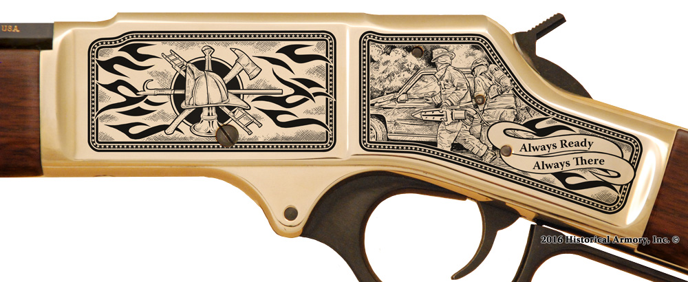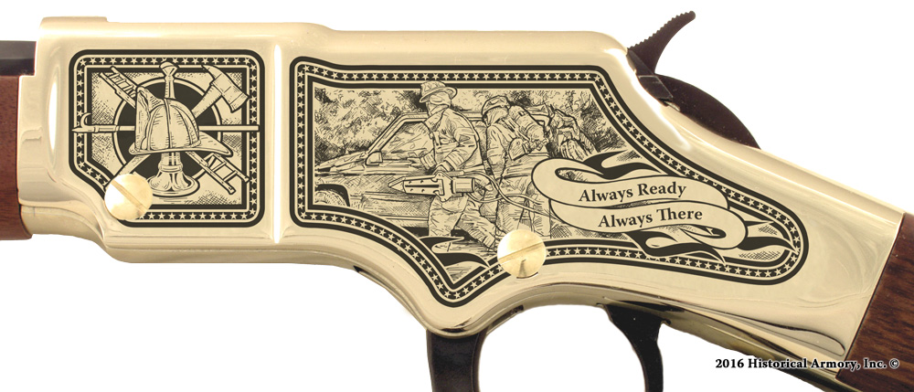 Historical Armory is proud to pay tribute each year to the American Firefighter. This year our theme is "Volunteer Firefighters." Through the years, our rifles have delighted firefighters with a high quality keepsake and helped departments raise desperately needed funds through local fundraising efforts. With our personalization program, our rifles have marked the years of service of a retiring firefighter, and sadly, honored the loss of others in the line of duty.