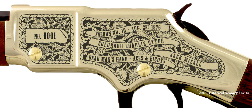 Historical Armory is proud to present the Wild Bill Hickok Limited Edition Rifle. Available on the fully functional, American-made Henry H001L .22LR, the “Golden Boy” H004 .22LR, the "Big Boy" H006 (not pictured) and the Henry H009B .30/.30. The Wild Bill Hickok Limited Edition Rifle commemorates the impossibly colorful life of one of the West’s most famous personalities. From his days as a Union Army Scout and United States Deputy Marshal to his tragic murder while holding the infamous “Dead Man’s Hand” during a poker game in Deadwood in 1876, the Wild Bill Hickok Limited Edition Rifle is meticulously researched, beautifully illustrated, and superbly captures the essence of the West’s first true gunfighter!