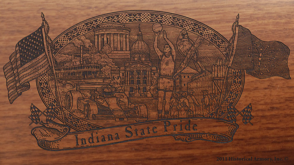 The right side of the American walnut buttstock is engraved with an intricate, original piece of artwork that captures the unique history of your state, while the left side is reserved for custom personalization.