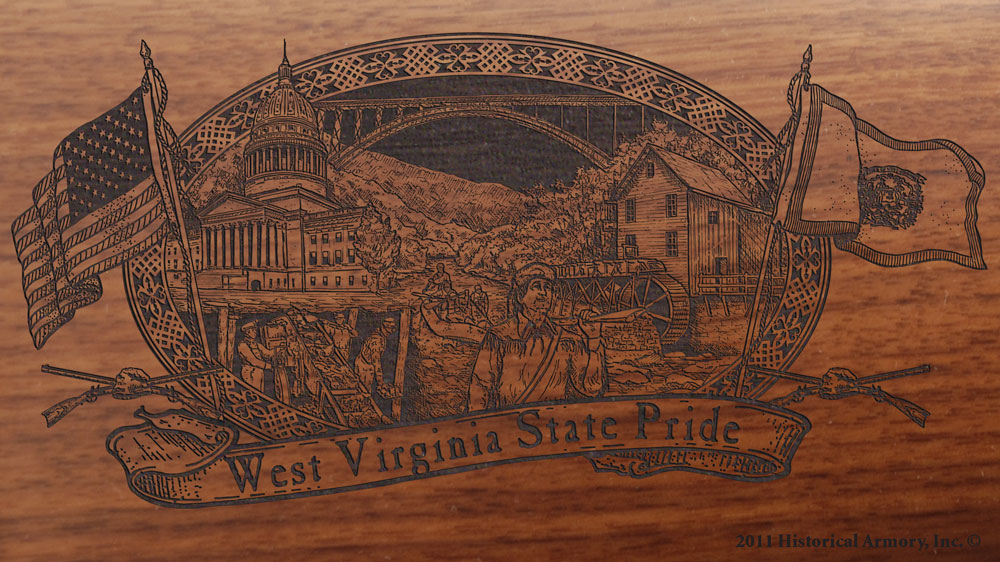 • The right side of the American walnut buttstock is engraved with an intricate, original piece of artwork that captures the unique history of your state, while the left side is reserved for custom personalization.